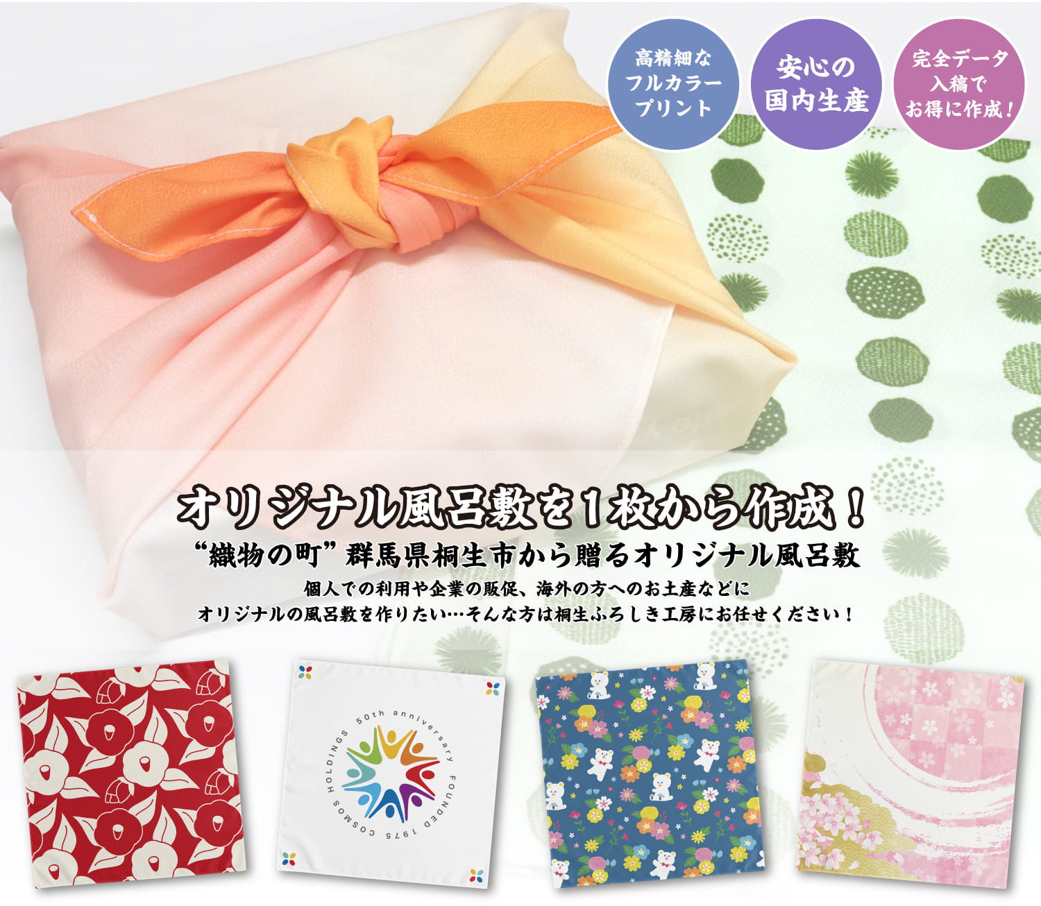 創業40年以上!「織物の町」群馬県桐生市ののれんメーカーが贈るオリジナルの風呂敷を1枚から作成いたします。
